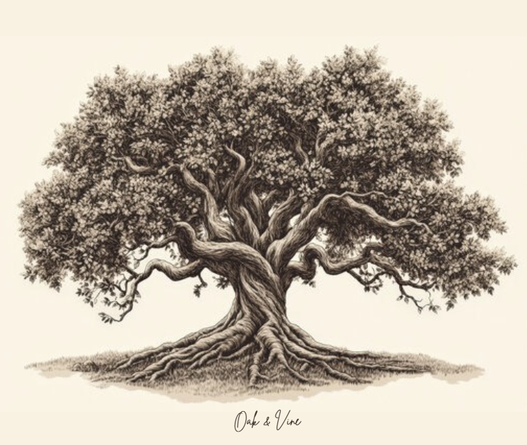 Oak & Vine bloomed from two images in scripture the Lord planted in my heart long ago – Isaiah 61:3 and John 15:5. The oak represents strength, endurance, and righteousness while the vine represents connection, dependence, and abiding in Christ. They both remind me that a meaningful life isn’t built overnight – it’s grown slowly, deeply, and intentionally while remaining rooted in God’s Word.
